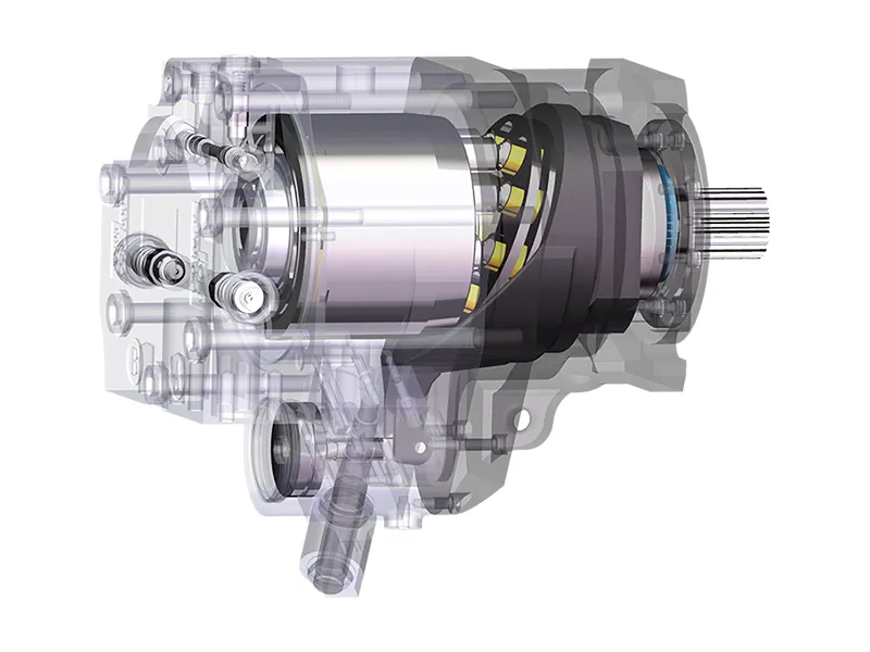 มอเตอร์รุ่น HMF แบบปริมาตรคงที่ในระบบวงจรปิดออกแบบมาเพื่อเพิ่มประสิทธิภาพและความยืดหยุ่น โดยพัฒนาต่อยอดจากมอเตอร์รุ่น TM89 ที่เชื่อถือได้ มาพร้อมตัวเลือกปรับตั้งแรงดันสูงที่ 35 MPa และ 42 MPa ภายในตัวเรือนเดียวสามารถติดตั้งส่วนประกอบสองแบบที่แตกต่างกัน ทำให้เลือกใช้ปริมาตรการกระจัดได้สองค่า อีกทั้งยังมีปลอกนอกที่ได้มาตรฐานและตัวเลือกการเชื่อมต่อแบบเฟืองเพื่อรองรับการติดตั้งที่ยืดหยุ่น